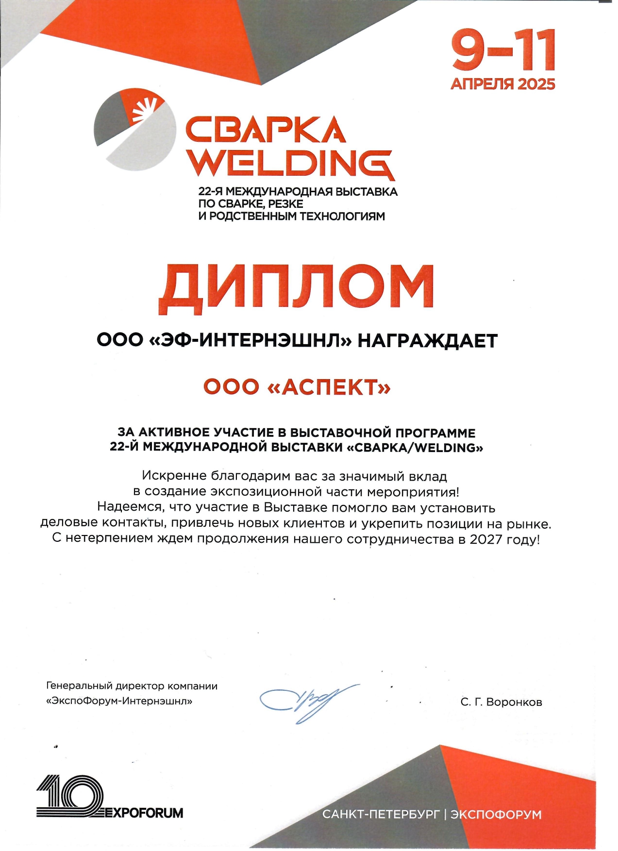 9-11 Апреля в Санкт-Петербурге, в Экспофоруме состоялась тематическая выставка "Сварка/Welding 2025" Мы предлагаем вашему вниманию краткий обзор данного мероприятия.
